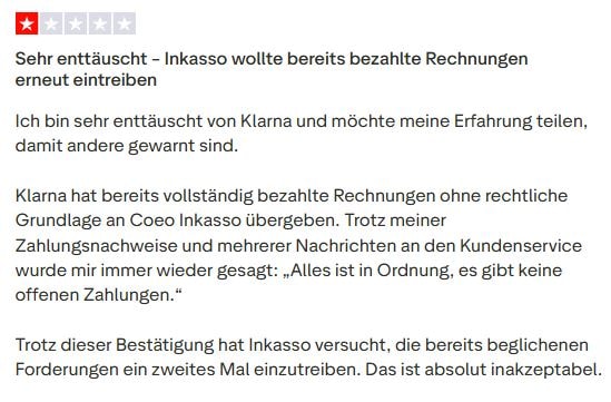 Coeo Inkasso ist ein Hauptpartner von Klarna. Die häufigsten Probleme entstehen, wenn Nutzer Ware retourniert oder bereits bezahlt haben, die Zahlung aber bei Klarna (oder Coeo) nicht korrekt verbucht wurde.